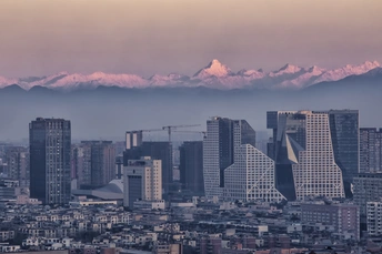 在成都看雪山真的是一件很惬意的事情呢!你知道吗,每年的4月到9月是成都观雪山的最佳季节,而清晨则是一天中最适合观山的时间。想象一下,站在窗前,远眺那连绵的雪山,仿佛整个世界都被雪覆盖,真是美不胜收。 而且,成都周边有很多可以欣赏到雪山美景的地方。比如西岭雪山,那里不仅雪景壮观,还有丰富的活动可以体验,像滑雪、赏雪、泡温泉等等,真的非常适合游玩。 当然啦,交通方面也是非常便利的。你可以选择自驾游,也可以乘坐公共交通前往。如果你想更轻松地到达目的地,还可以选择包车游或者参加旅行团。 所以,如果你来成都,一定不要错过看雪山的机会哦!相信你一定会被那绝美的景色所震撼和感动的。 哇,这张照片真是美极了!它捕捉到了城市与自然的和谐共处,给人一种宁静而又充满生机的感觉。背景中的雪山增添了一份壮丽,而淡紫色到粉红色的天空渐变则让画面更加梦幻。城市建筑群密集而有序,现代设计风格的建筑让人眼前一亮。那个高耸的尖顶结构更是点睛之笔,为整个画面增添了层次感和神秘感。这张照片真是让人心情愉悦,仿佛能让人忘记生活的烦恼呢! 虽然照片的色彩已经非常丰富和协调,但如果能在后期处理中稍微增强一下雪山和天空的对比度更完美