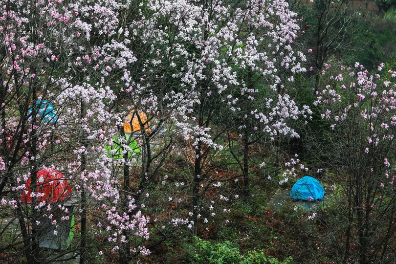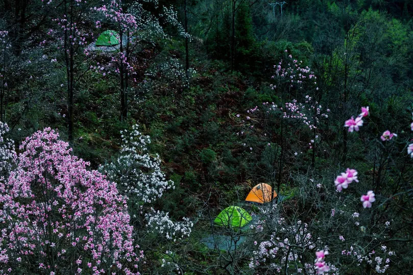 周末小徒步:八小时的车程当天往返,只为去赴一场山野里花的盛放。天青色的天空,山野里的野生辛夷花,在山顶上迎着风雨,怒放。在山野中,万物都被春雨浇醒,复苏,人也是吧。九皇山的辛夷花正在盛放。