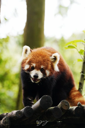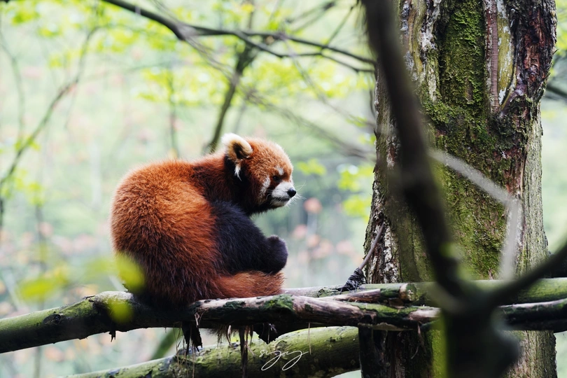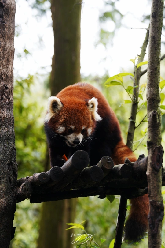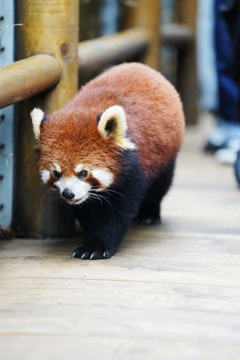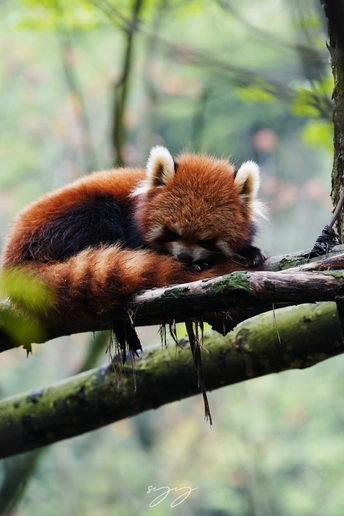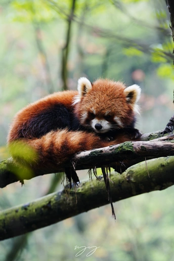 小熊猫(学名:Ailurus fulgens):是小熊猫科、小熊猫属的一种动物。雌雄相似,不存在二态性。外形像猫,但较猫肥大,全身红褐色。圆脸,吻部较短,脸颊有白色斑纹。耳大,直立向前。四肢粗短,为黑褐色。尾长、较粗而蓬松,并有12条红暗相间的环纹;尾尖深褐色。蹠行性;前后足均具5趾;无性二型。头骨高而圆;听泡相对扁平;眶后突不完全发育或缺失;矢状嵴低;具翼碟骨;上腭高耸拱形,中间凹陷;中翼骨腭缢缩;冠突明显呈钩状。小熊猫生活在2500-4800米的落叶和针叶林中的温带气候中。栖居于大的树洞或石洞和岩石缝中。早晚出来活动觅食,白天多在洞里或大树的荫凉处睡觉。成年小熊猫在交配季节之外很少互动。吃浆果、花朵、鸟蛋、竹叶和其他植物的小叶子。 竹子的叶子是小熊猫的主要食物来源。食物被前爪抓住并在坐着、站立或仰卧时送入口中。以这种方式抓住的食物**入嘴巴的一侧,剪断,然后在吞咽之前广泛咀嚼。生活在缅甸北部、尼泊尔、印度锡金地区以及中国四川西部和云南地区海拔2200至4800米的喜马拉雅山脉中。