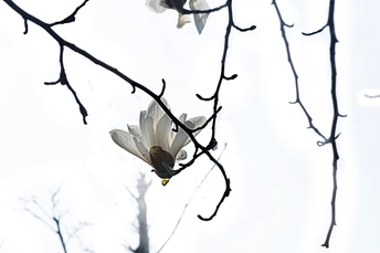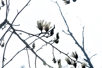 白玉兰花(二) ———() 春风入袖蝶飞舞, 花如荷瓣嫩肌骨。 洁白无瑕一时美, 春风未过落如土。