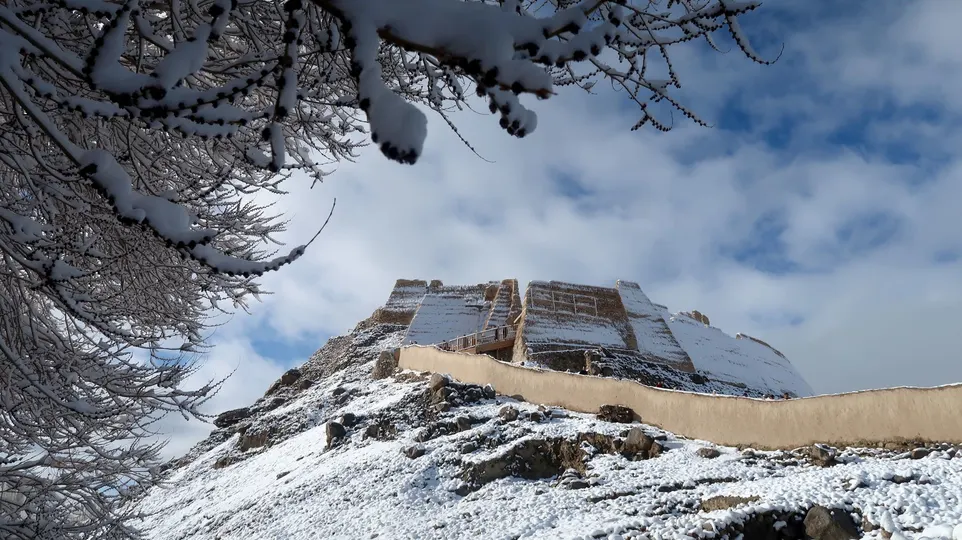3月的帕米尔,趁着我们熟睡时悄悄下了一场雪.平时灰秃秃的石头城一下子变成了银装素裹的世界.