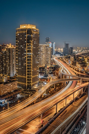 青岛城市夜景璀璨夺目,车轨交织成流动的星河,彰显着这座海滨城市的活力与繁华。每一束灯光,都诉说着青岛的故事,让人心驰神往。