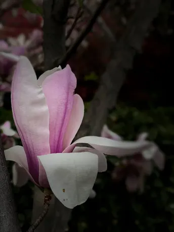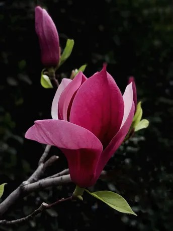 紫玉兰(Yulania liliiflora (Desr.) D. L. Fu),木兰科、玉兰属植物,为中国特有植物,分布在中国云南、福建、湖北、四川等地,生长于海拔300米至1,600米的地区,一般生长在山坡林缘。紫玉兰花朵艳丽怡人,芳香淡雅,孤植或丛植都很美观,树形婀娜,枝繁花茂,是优良的庭园、街道绿化植物,为中国有2000多年历史的传统花卉和中药。紫玉兰列入《世界自然保护联盟》(IUCN)ver 3.2:2009年植物红色名录。且不易移植和养护,是非常珍贵的花木。 iPhone 11 Pro 拍摄,Snapseed 修图。
