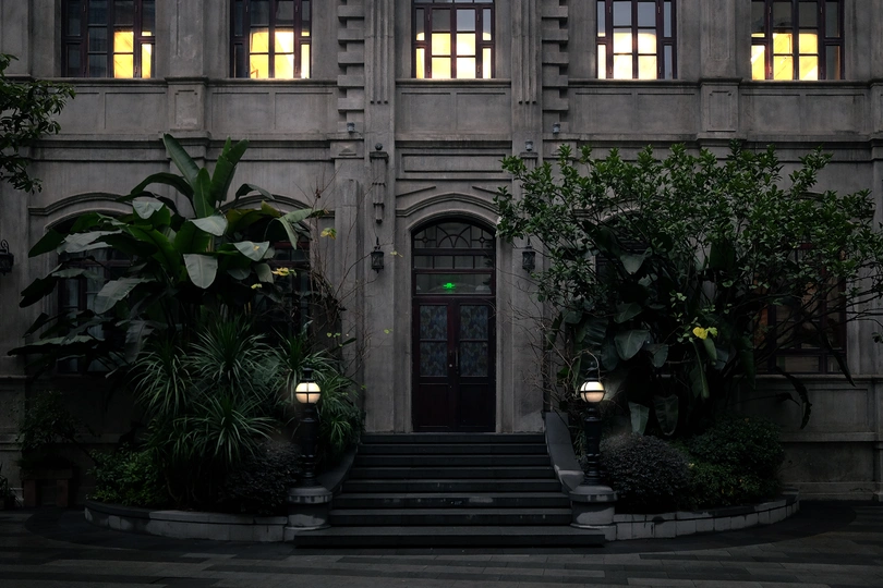 南方冬日的傍晚,更加阴冷。这幢老公馆,大门紧闭,门前也少有人走,有一种落寞、惆怅的味道,想必这里应该是高朋满座或灯火辉煌的吧。还好,二楼的灯亮着,黄色的灯光给这建筑增添了一丝暖意,让人感觉这是热闹之后的回归。