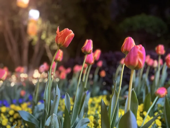 灯光下的郁金香