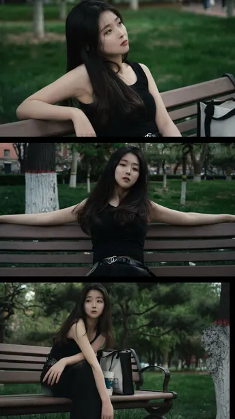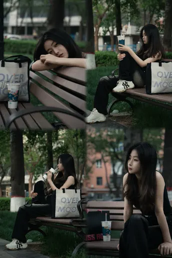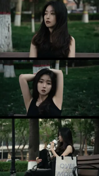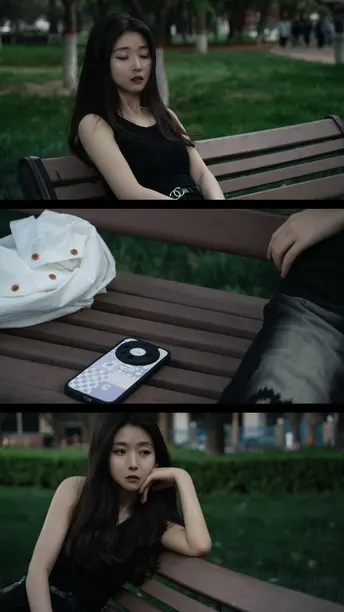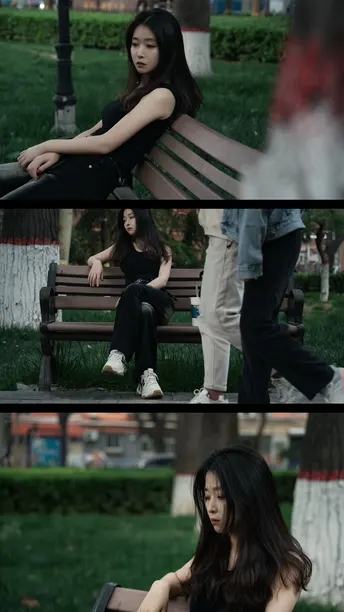 雨后的傍晚孤寂的长椅伤心的她