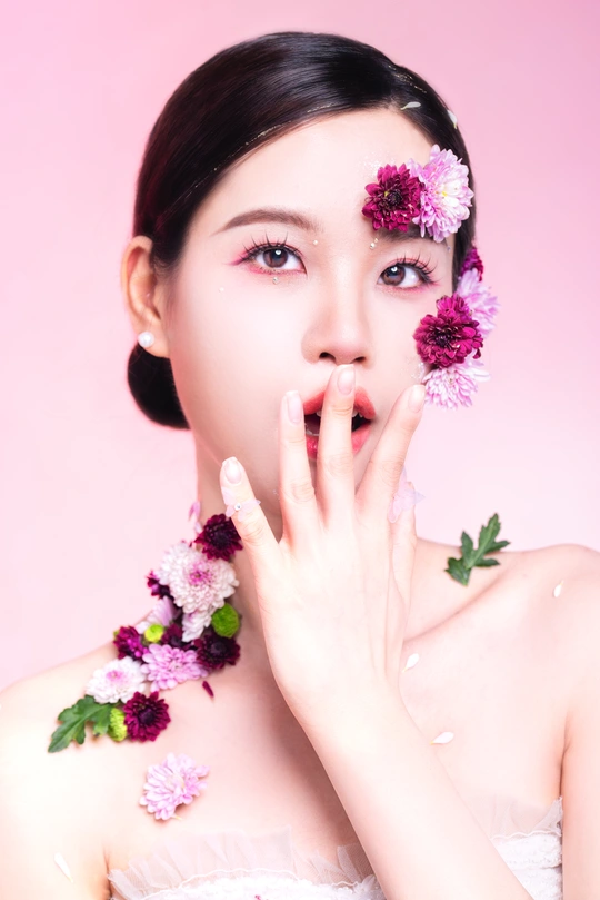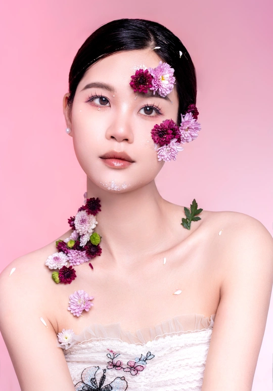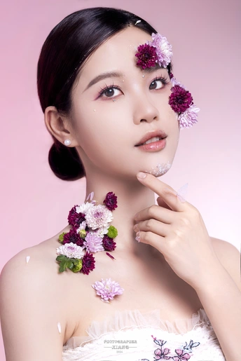 春天是一个充满生机和活力的季节,鲜花盛开,万物复苏。在这个季节里,妆容创作也可以融入春天的元素,让自己更加美丽动人,在眼妆方面,可以选择一些明亮的颜色,如粉色、浅紫色或淡蓝色等,来呼应春天的气息。整个妆容创作以轻盈自然为主,注重色彩搭配和渐变效果,让人看起来更加清新明媚,充满活力。同时,也可以根据自己的喜好和肤色进行调整和创新,打造出属于自己的春天妆在摄影创作中,灯光和背景的设置对于塑造照片的氛围起着至关重要的作用。双灯渐变背景与深口罩主光是一种常用的布光技巧,能够营造出独特的视觉效果,使用两盏灯加色片以不同的亮度和角度照射背景,形成从亮到暗的渐变效果。 出镜模特:Serena 妆容妆造:芳宝