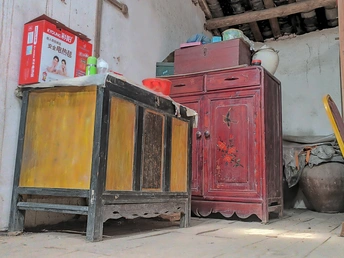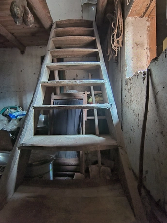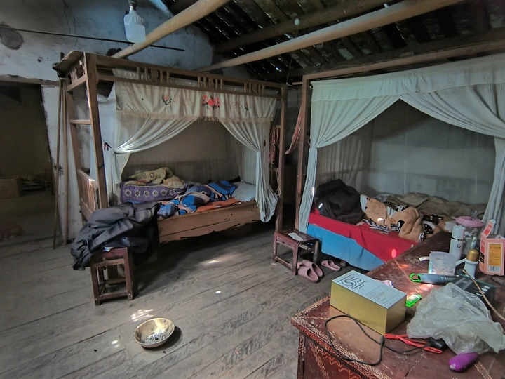 下村入户时发现了这个久远的木梯,旧家具等很有年代感,虽已是危房但还住着2个老人……
