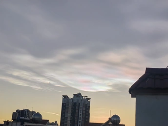 在楼顶上无意间看到的,据说看到七彩祥云的人都会有好运!