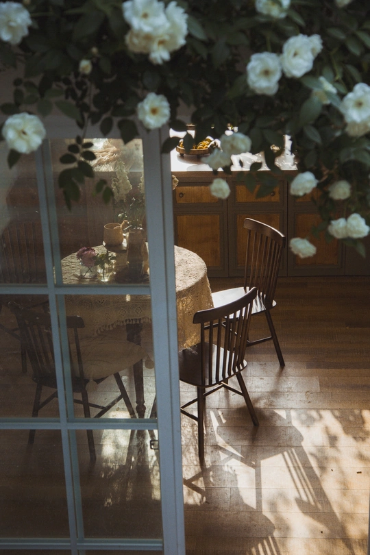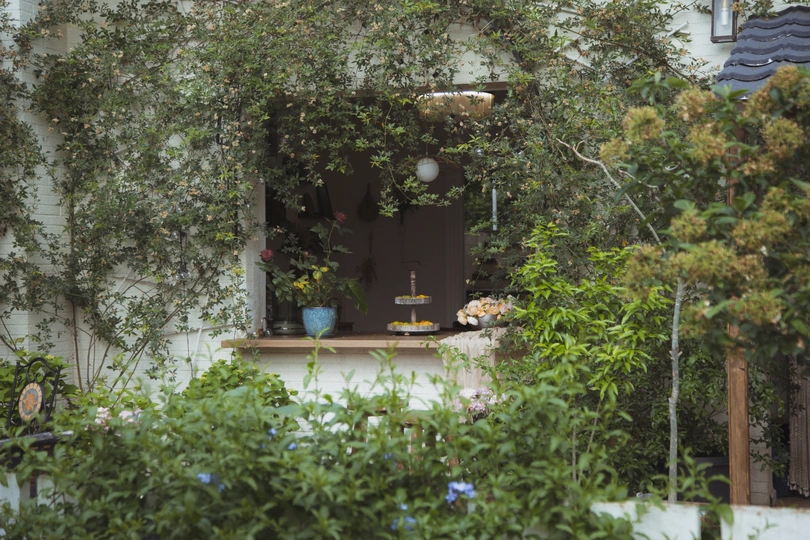 想要一个这样的院子,有很多花,有几只宠物,与世隔绝。