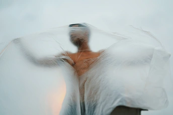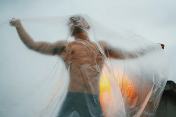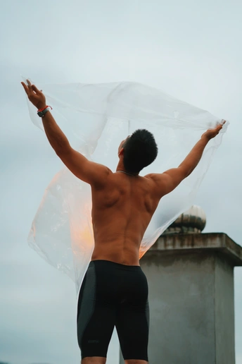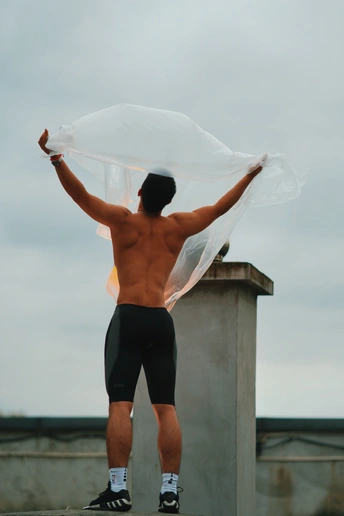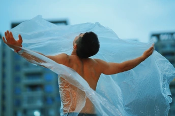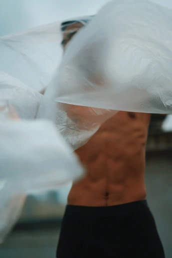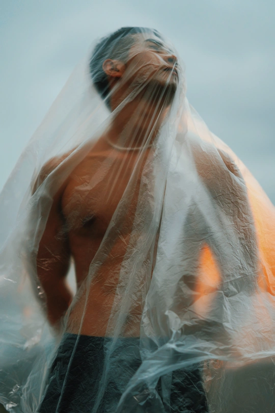 一年前我网购了一卷塑料布,因为第一次拍摄没有成功,就再也没有敢用了,所以这次见到模特后我讲了我的想法,他很爽快的答应了……我们登上露台,迎着风的方向,期待着起风时刻! 索尼A7R3/85 1.4拍摄