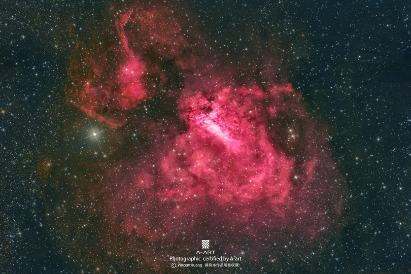 欧米茄星云(编号NGC 6618)距离我们大约5500光年,坐落充满星云的射手座。用双筒望远镜就可以看到天鹅星云,它位人马座方向,大小约横跨20光年。本图使用RGB通道拍摄。