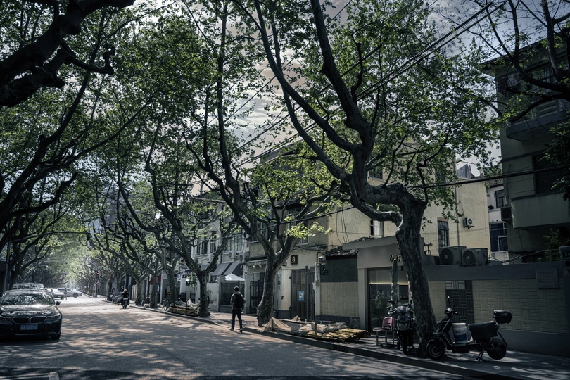 上海路边的梧桐树 ———() 弯弯曲曲无直杆, 东扭西歪终向天。 心中安然坦荡荡, 何必在意曲弯弯。 春绿缃绮垂四边, 挡住弯曲龙爪尖。 待到夏撑绿伞时, 大树荫下众心甜。 上海路边的法国梧桐树很美,美在枝干,只有冬天叶落净,没有了掩盖了,才能看到它的枝干的真面目,弯曲的枝干有一种柔弱和坚强。