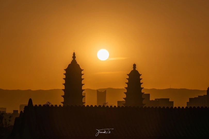 莫负时光莫负己,愿时光善待而不再流逝 时间是不能握在手里的,在了解到一个悬日机位后因为学校各种事情而耽搁最佳时间去拍摄,在后事去的两次又因为天气不好和时机不对而错过最佳悬日时机。本图是因为时间错过勉强拍到的古建双塔与太原最高楼同框的悬日。真是时间不可捉错过就是错过的可惜经历。