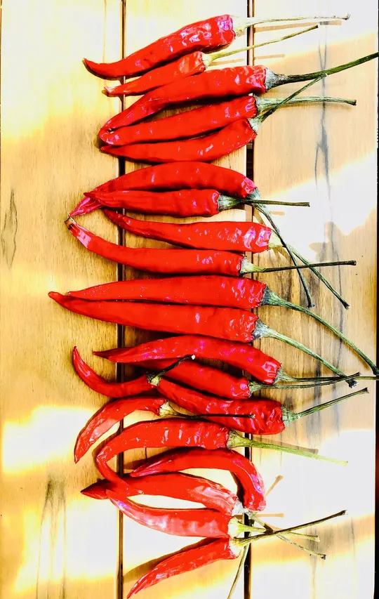 鲜的小米辣放不住 我姥的做法是把它晒成干辣椒 还必须码整齐了😂