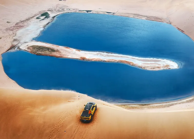 位于内蒙阿拉善盟左旗的巴丹吉林沙漠里的“日”字型海子 拍摄:大疆御3pro