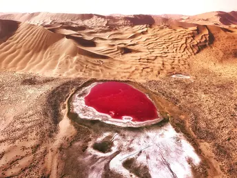 内蒙阿拉善盟左旗巴丹吉林沙漠深处的红色海子 拍摄:大疆御3pro
