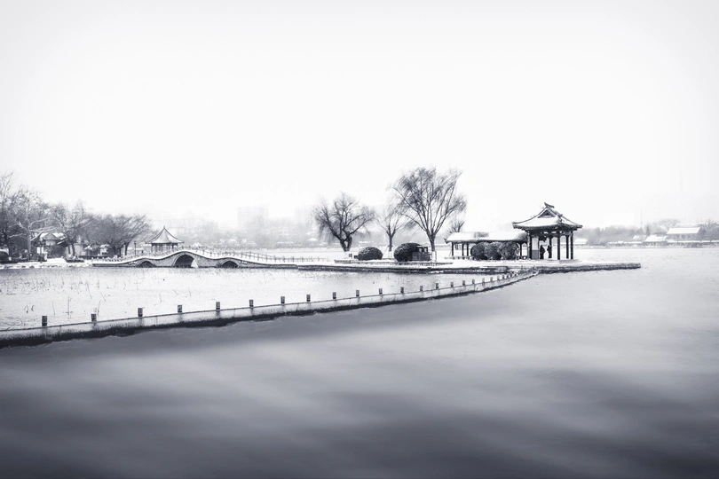 大明湖的翠柳屏岛应该算是济南赏雪的网红地了,这几年经常看到有大神在这里拍的作品,所以模仿了一下,但是远没有人家拍的好看,雪天的水墨感没完全体现出来,没带三脚架,而且风大,湖面不是很好看,只能靠后期路径模糊和蒙版擦除,下个冬天争取来拍一次长曝