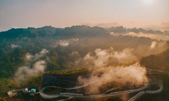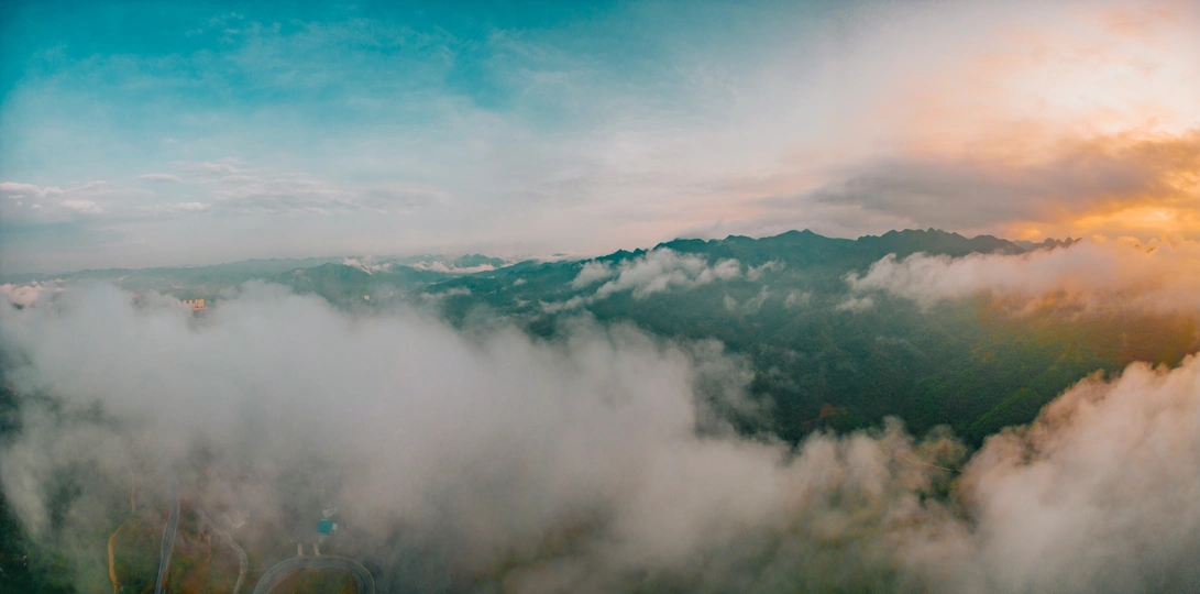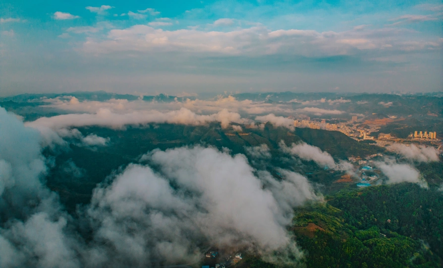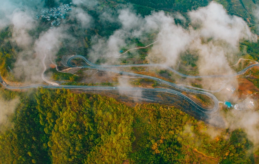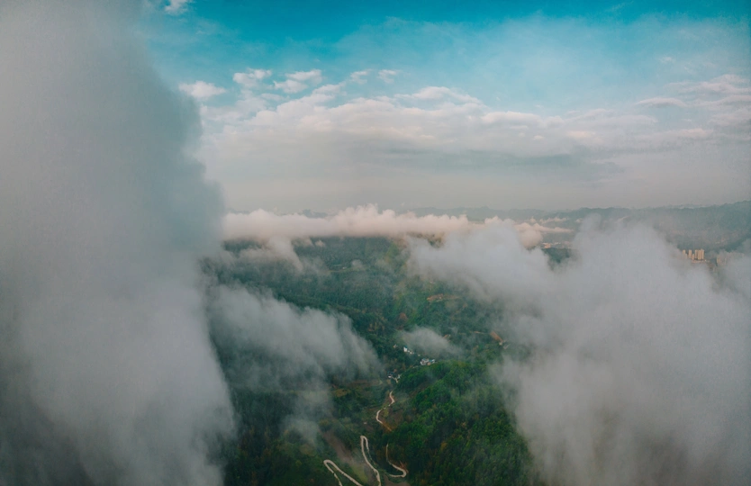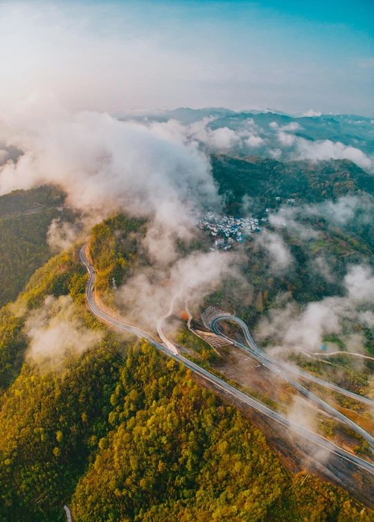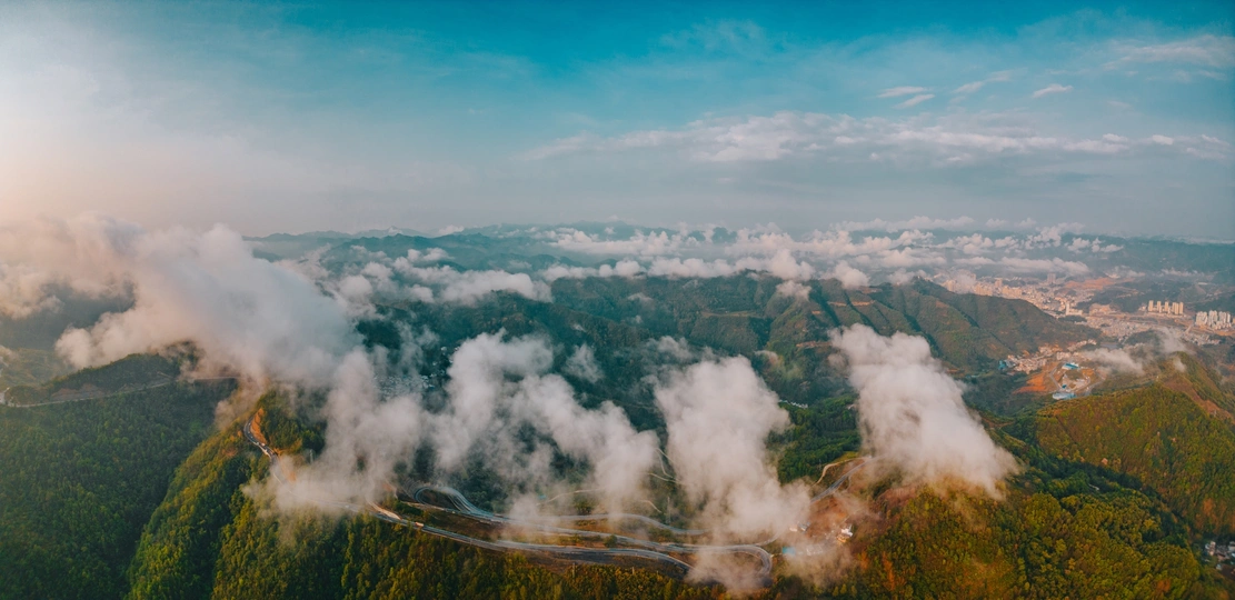 2024年5月7日,贵州省黔西南布依族苗族自治州望谟县弄蜡村,山川沐浴着阳光,云彩翻涌,阳光下的绿树田野和公路五彩斑斓,晨起的车辆在盘山公路穿梭,立夏后大地蓬勃的生机已经蓄力待发,款款而至。