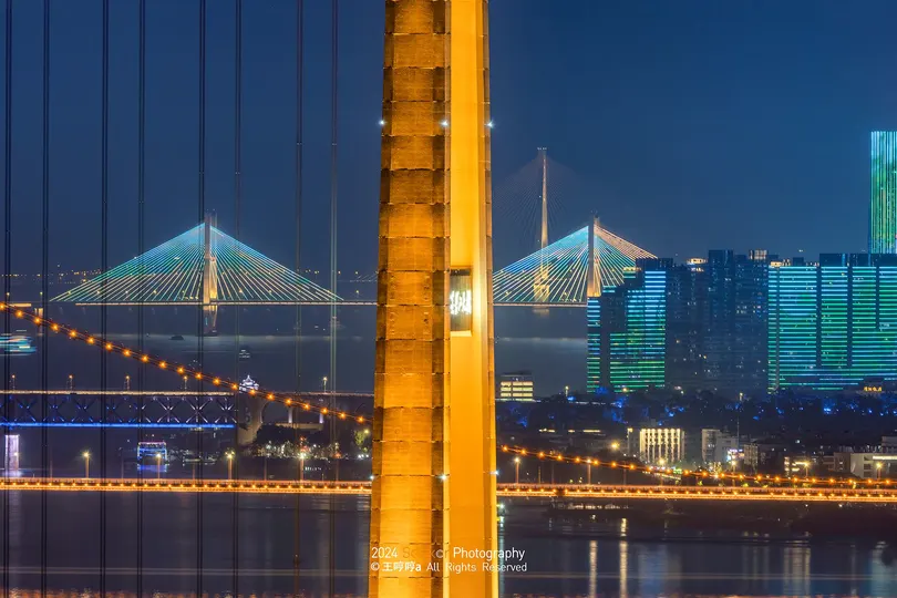 在难得的好天气里,杨泗港大桥也意外开了灯,于是拍下了这张照片,从近至远依次为杨泗港大桥,鹦鹉洲长江大桥,武汉长江大桥,武汉长江二桥,二七长江大桥