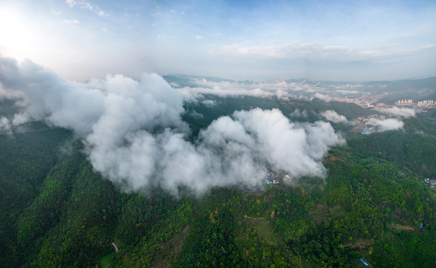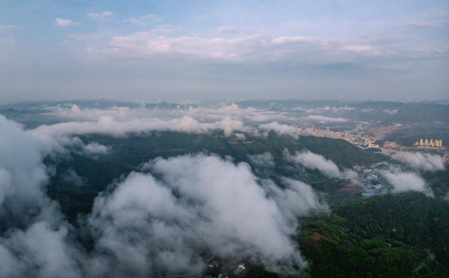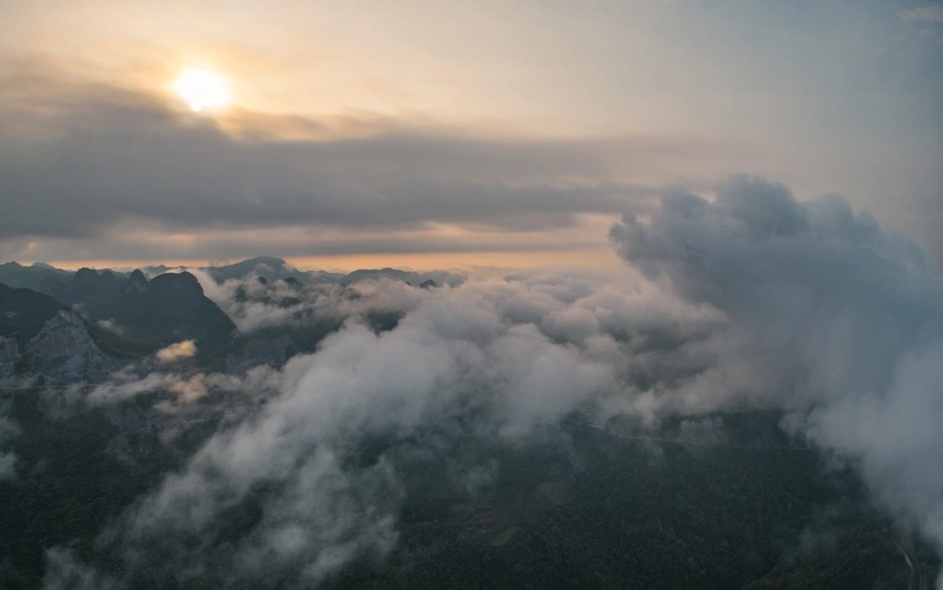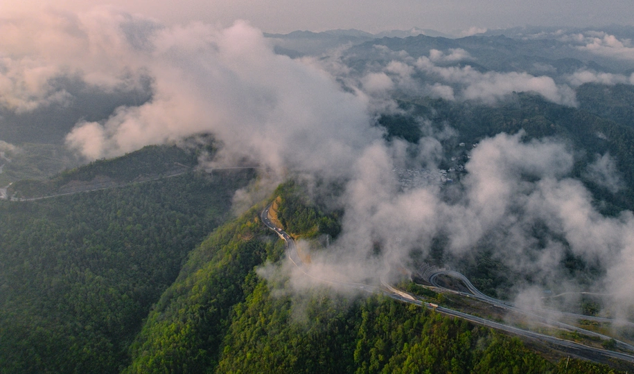 2024年5月6日,贵州省黔西南布依族苗族自治州望谟县弄蜡垭口552国道线,清晨的阳光洒在群山和公路上。