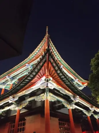 此图拍摄在一个我吃完饭与朋友在昆明翠湖散步时所拍,它屹立在此,不知多少年。因为有现代灯光的照应,让它在月黑风高的夜晚也如此威严,让人震撼。我看到它的第一眼,先是被它的中国红全身震撼到,在古代红色寓意吉祥如意,或许建筑在古代别有用处,在现代这一抹中国红是为了让后人知道我们的文化流传至今的意义。 看着这建筑,我情不自禁感叹到,正是有了盛世中华,让这一抹中国红在每一个人心里留下印象