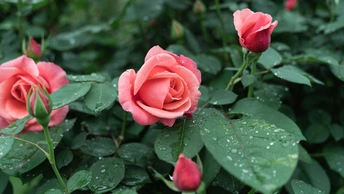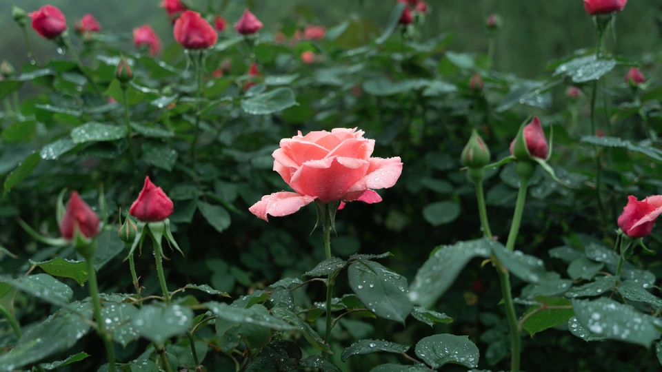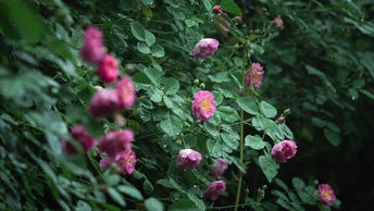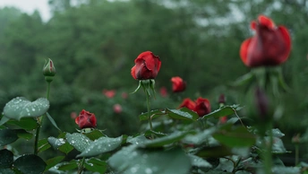 阴雨天的月季花