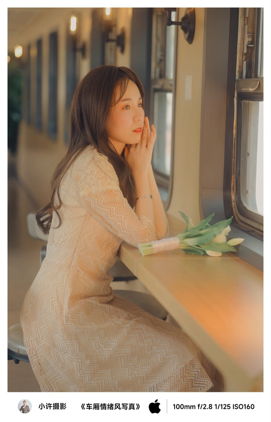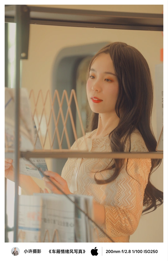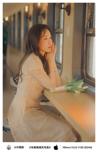 一组车厢情绪风写真,很有电影感,光影魅力。