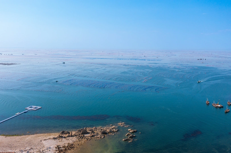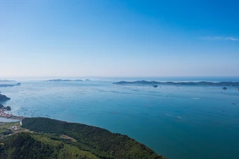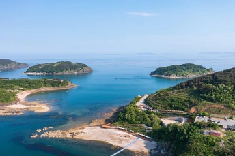 航拍大连市长海县长山群岛海边风光