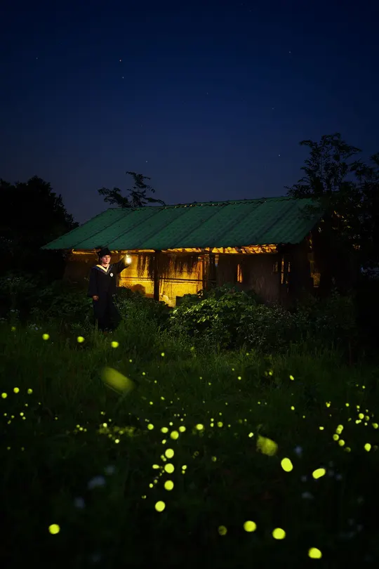 毕业季到了,我也即将毕业步入社会,身为摄影师,我给很多人拍过毕业照,总得给自己再拍一张吧,最近有收到消息,梁子湖的这个农场有萤火虫,我们便驱车赶到了这个地方,为我拍下了这样一张梦幻其有意义的照片。