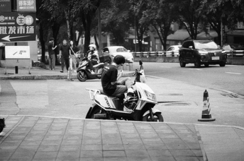 福马400,批发市场,美团骑手,匆匆行人。车库出口,年轻摩友,穿行suv。平平无奇下午,奇无平平的黑白。