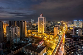 夜幕降临,城市的繁华与美丽在此刻绽放。看,那条宽阔的道路上车水马龙,车灯形成的光带宛如流动的星河。 城市:太原市城东