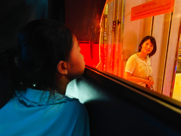 窗里窗外,两张面孔,无声默视,无言相对,我看见了这个瞬间按下了快门。