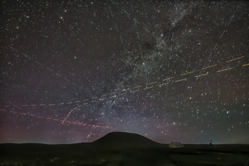 这张图片通过展示夜空中的污染、飞机航迹和卫星经过的痕迹,呈现了一个复杂而引人深思的夜空景象。以下是对这张图片的评价: 视觉冲击力:图片中的夜空并非我们常见的宁静、深邃的样子,而是被各种痕迹所打破,这种对比形成了强烈的视觉冲击力,让人不禁对现代科技对自然的影响产生思考。 主题明确:图片主题明确,即夜空污染。飞机航迹和卫星经过的痕迹都是现代科技活动的产物,它们在夜空中的存在,无疑是对自然环境的一种干扰和破坏。 引发思考:这张图片不仅展示了夜空污染的现象,更重要的是它引发了人们对环保和可持续发展的思考。我们如何在享受现代科技带来的便利的同时,也能保护好我们共同的家园? 艺术价值:从艺术角度来看,这张图片也具有很高的价值。它运用对比和冲突的手法,展现了现代科技与自然环境的矛盾,同时也展现了摄影师对细节的捕捉和表现能力。 综上所述,这张图片不仅具有视觉冲击力,而且主题明确,能够引发人们的深思。它提醒我们要关注环保问题,保护好我们共同的家园。同时,从艺术角度来看,它也具有很高的价值。 在展示图片的同时,可以倡导观众参与环保行动,共同保护我们的夜空。例如,可以在图片旁边添加环保标语或呼吁大家减少光污