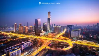 黄浦路上聚集了汉口最精英的质感建筑,这个视角下的武汉繁华现代,在绝美的夕阳映射下,武汉天地建筑群的玻璃幕墙上反射出柔和而精致的色彩,天空中的一轮娥眉月点缀了整个蓝调时刻,为整幅图添加了不可复制的绝美一笔~