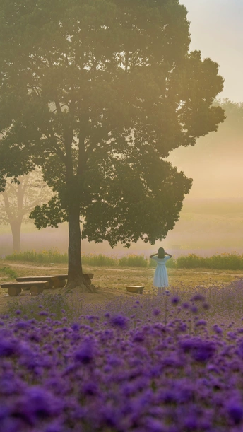 光谷政务中心的马鞭草都会在五月盛放,马鞭草的花期很长,长达三个月,这么美的花海,一定要来看日出➕晨雾,拍人像绝美~