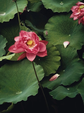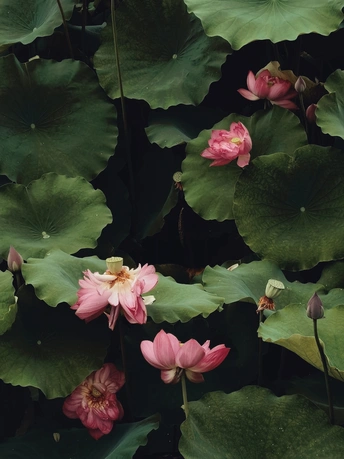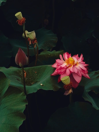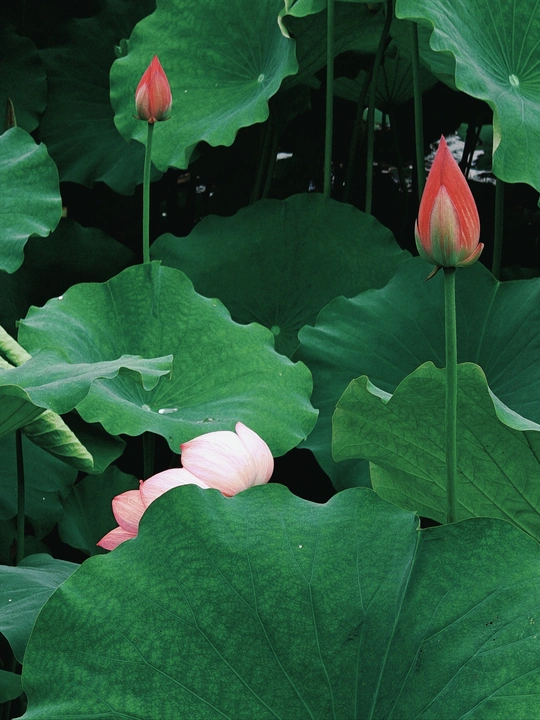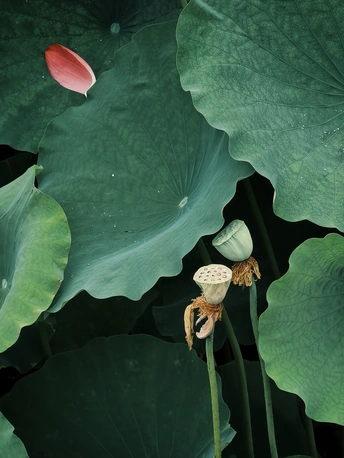 看到荷花首先想到的是清新雅致的工笔画, 我拍这组则想到了浓墨重彩的油画, 想用深色调和高度对比来营造戏剧性效果, 正好也掩盖了手机拍荷的尴尬。 审美是多元化的, 此时此片不一定顺应潮流, 但一定是在记录自己的心境, 尝试一下,未尝不可! 水平有限!慢慢操练(ง•̀_•́)ง