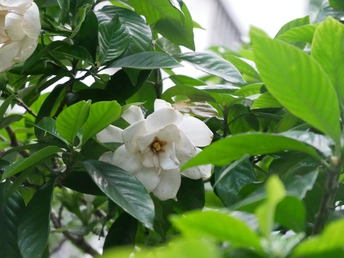 【姑苏花事·夏栀子】 苏州路旁、公园、小区的树丛里经常藏着几株栀子花… 矮株的栀子花小但香,深深浅浅地点缀在一片绿色中;高株的栀子花大,硕大的一朵从空中垂下。 📷松下gx85