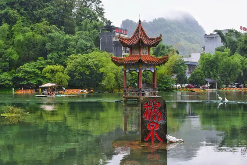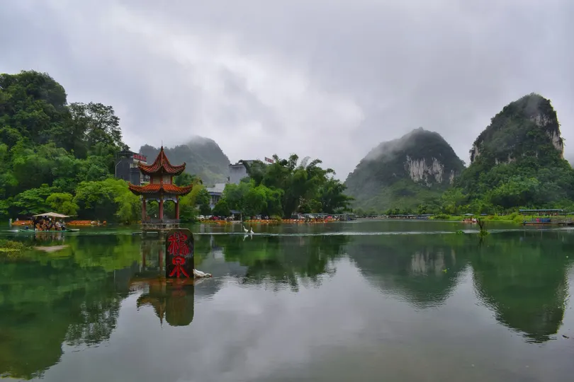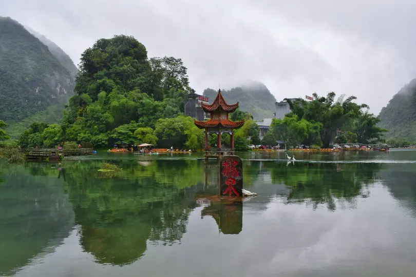 端午节阴雨天,丰水期的鹅泉风景,山峦叠嶂