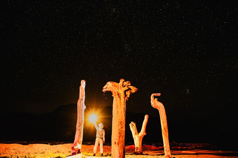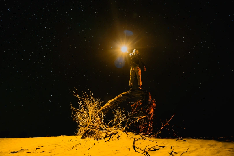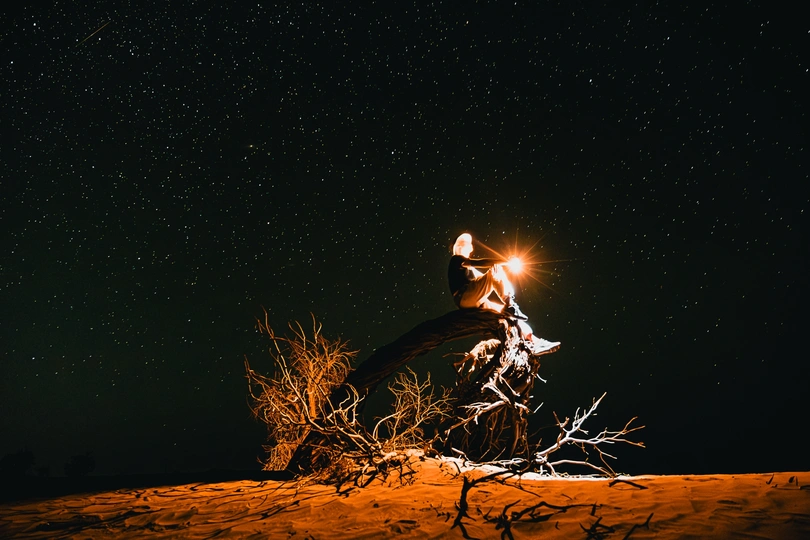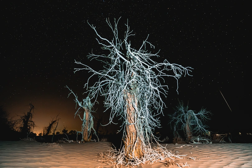 去年八月,独自驾车环游中国,从西藏进入新疆,为了赶一场英仙座流星雨视觉盛宴,独自一人两次进入塔克拉玛干沙漠,在一片胡杨林附近,我把随车带的折叠椅搬出来,坐在沙丘上仰望繁星