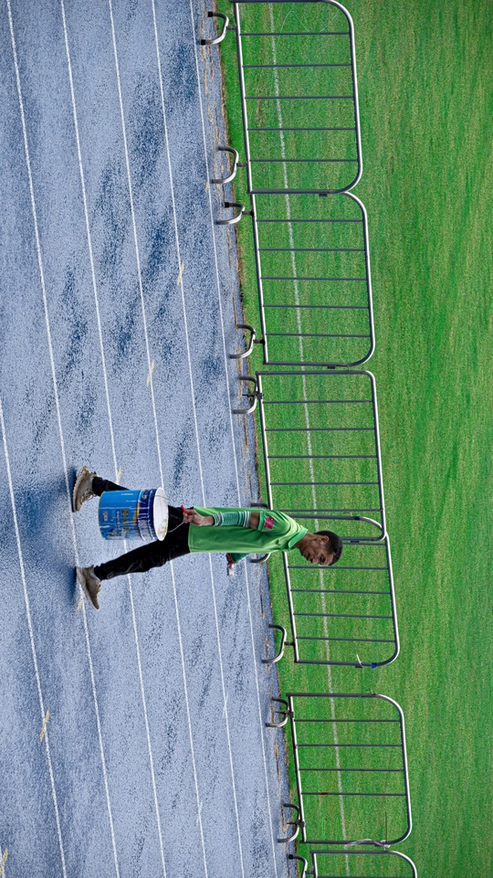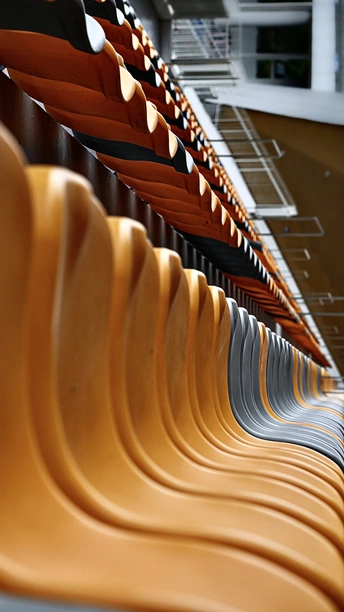 图组拍摄于星期一上午的龙华文体中心,场馆内的设施多以灰橙搭配,色彩看起来很鲜明