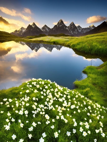 远眺雪山湖泊倒影最美风景
