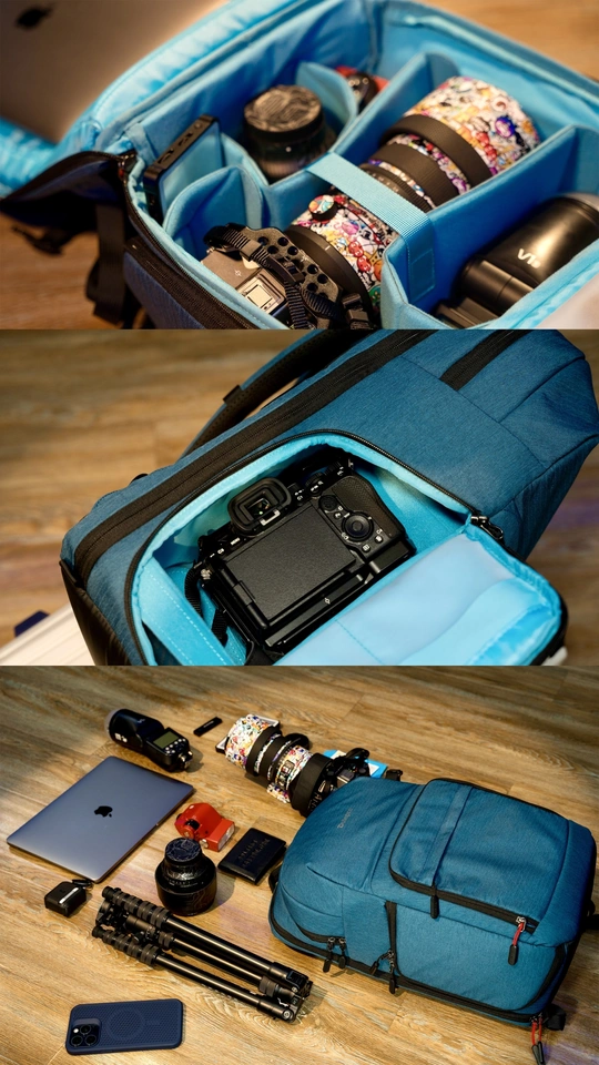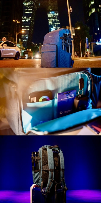 这款Dulepro City V2摄影包,造型时尚大气,多色可选,不仅有低调质感的蓝黑,也有高饱和的黄和红,可以满足不同性格的摄影师。 除了颜值,它竟然可以轻松装下我的两机三镜,闪光灯及电脑和三脚架。这款包多功能分区设计合理,多规格收纳可以满足外出拍摄需要,上下分层真的巨能装!!!除了侧挂三脚架,设计了侧开相机快取口,毕竟美好的瞬间总是转瞬即逝。 背包表面防水防磨损,易清洁打理,无需担心复杂天气。背包轻量化设计,重量平衡控制精准,背负感体验很好,即使是长时间背负也不会觉得累。 这款包绝对是我日后外出拍摄的不二之选!