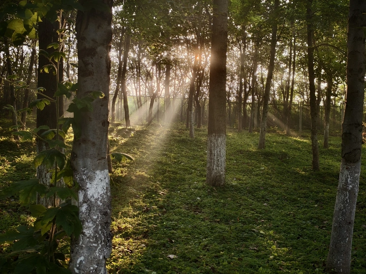 清晨枝木间的夏光