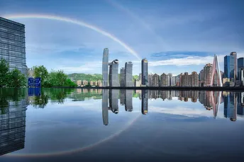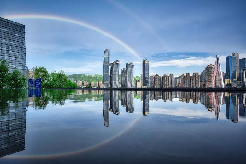记得那时候是连续下了几天暴雨过后的晴天,我刚才走到天空之镜准备拍洪崖洞的,刚好双重彩虹出现在朝天门上空,转瞬即逝的几分钟,还是让我拍到了,
