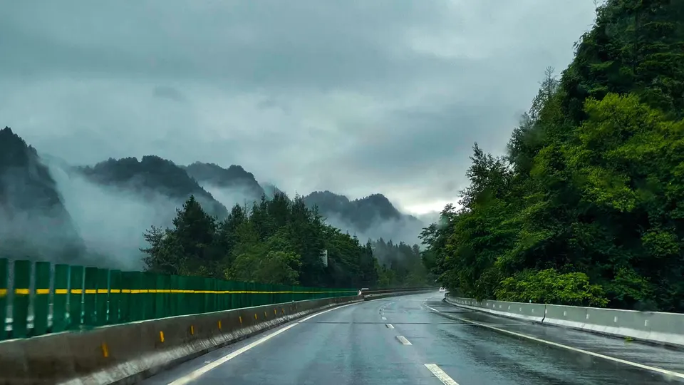 从重庆去湖北利川,行驶在沪渝高速公路上石柱段的时候,深山里下大雨了,行驶在雨朦胧,雾蒙蒙的意境里,就像走进一幅幅美丽的写意山水画卷之中。