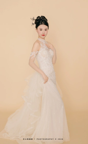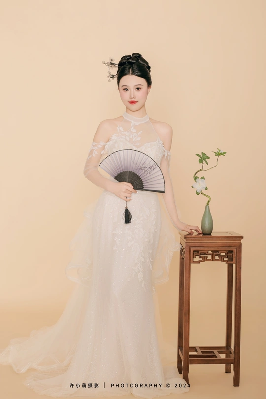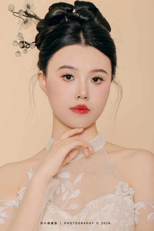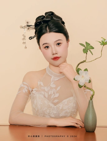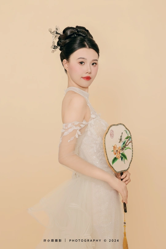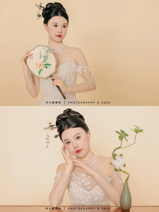时间:2024年6月24日 地点:南京缔弘艺术学院一楼摄影棚基地 模特:小肖 摄影&后期:我 📷:佳能R62+RF70200 2.8 灯光布置:1个漫反射+2个平光闪光灯和柔光屏 回缔弘复训练习的第二周,今天我们学习拍摄古风人像。做了以下笔记总结: 1)古风人像分类主要有四种,分别是工笔画、汉服、新中式和秀禾。 工笔画:使用平光,人物面部均匀受光。服装素雅,光线柔美。背景是米色,后期制作成像宣纸画一样的。 汉服:端庄华丽大气,光线柔和。外景可以使用逆光,室内使用平光、漫反射。头饰比较多。在拍建筑物作为背景的时候一般选择对称构图。 新中式:色彩鲜艳,活泼跳跃的,喜庆、俏皮可爱的,情绪饱满的风格。大部分使用平光,和漫反射。 秀禾:服饰色彩鲜艳,端庄婉约。使用平光,和漫反射。户外用自然光。 2)古风的动作柔和、优美,通过团扇、油纸伞等道具来营造氛围感。 3)光线有基本两个特性:一是方向性确定光线的来源,比如顺光、逆光、侧逆光等。二是还原性确定色彩。 4)工笔画的布光用法:拍工笔画,打一个漫反射,再打两个平光闪光灯,再用一个柔光屏放闪光灯前面,进行二次柔化。