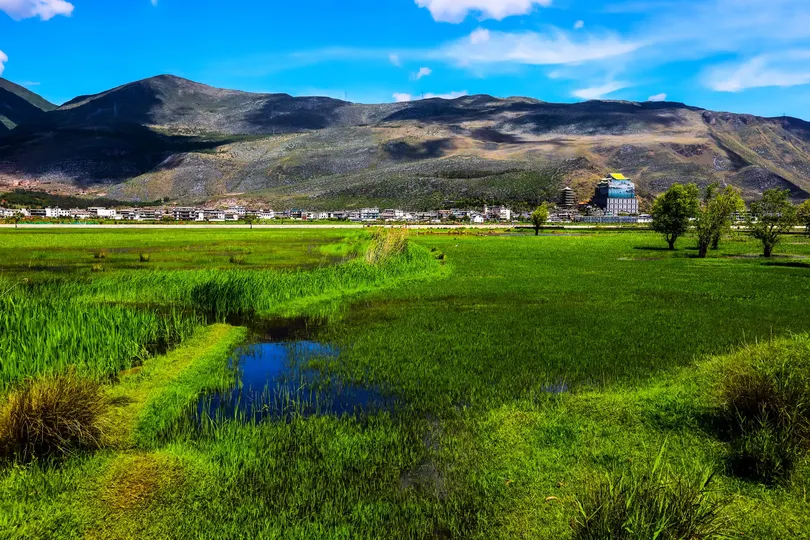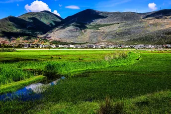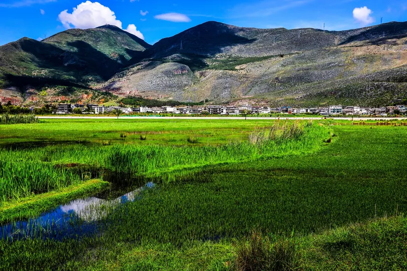 鹤庆草海,是名副其实的高原水乡,它位于鹤庆坝子。由于坝子东西山脚众多潭泉和漾弓江流域水系源源不断,川流不息的来水,在鹤庆坝子形成了水域宽阔的天然草海湿地。