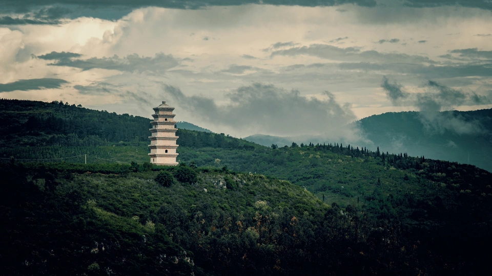 建水县天柱塔初建于清朝康熙年 间,但建设过程历经了康熙、乾隆、道光、同治四朝,共七任帝王在位期间, 期间多次停建和重建, 最终在同治年间完 成建设。 然而,这座塔的命运多舛,建成不足百年,于1947 年在一场战火中被毁。幸运的是,2007年在建水有识之士的倡导下,天柱塔得以在原址上重建, 形成了如今我们所见的 9层高塔