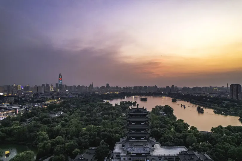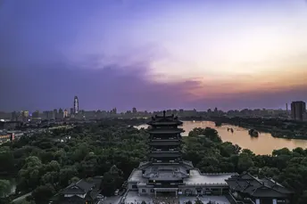 夕阳下的大明湖晚霞,色彩斑斓,如同一幅天然的油画。